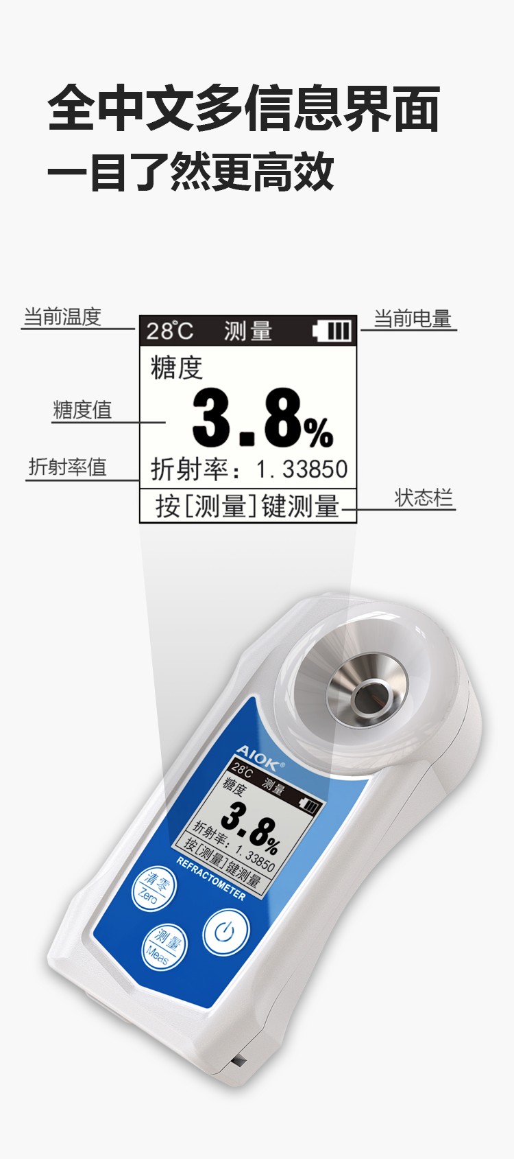 高精度糖度仪,一键测量,3秒读数,应对各种酸碱腐蚀