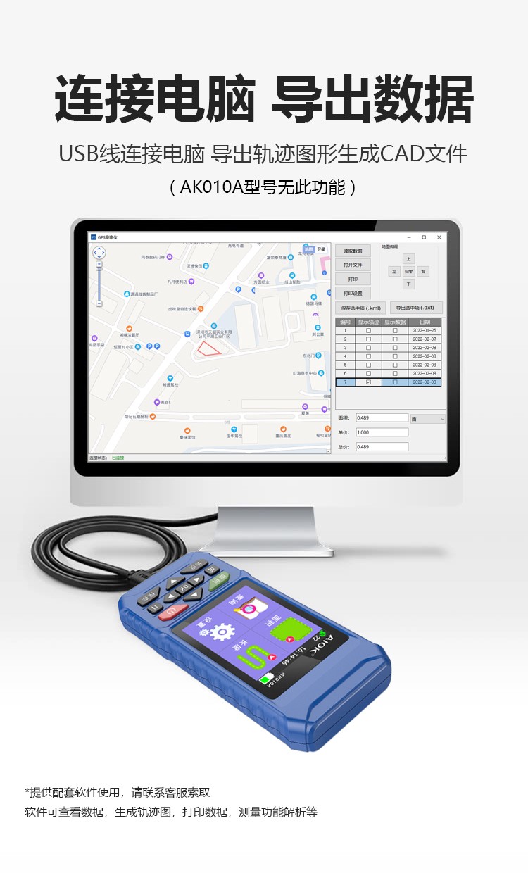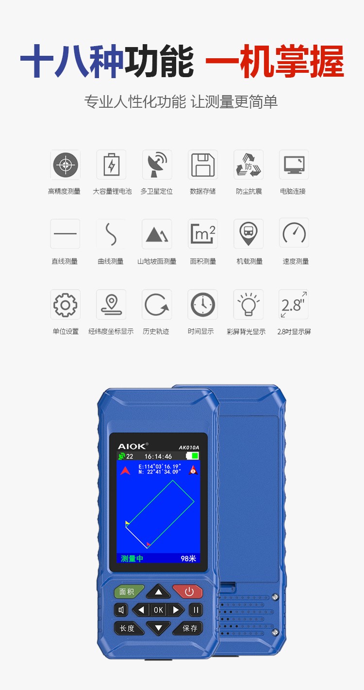 面积测量、长度测量、记录保存、山坡测量、车载测量