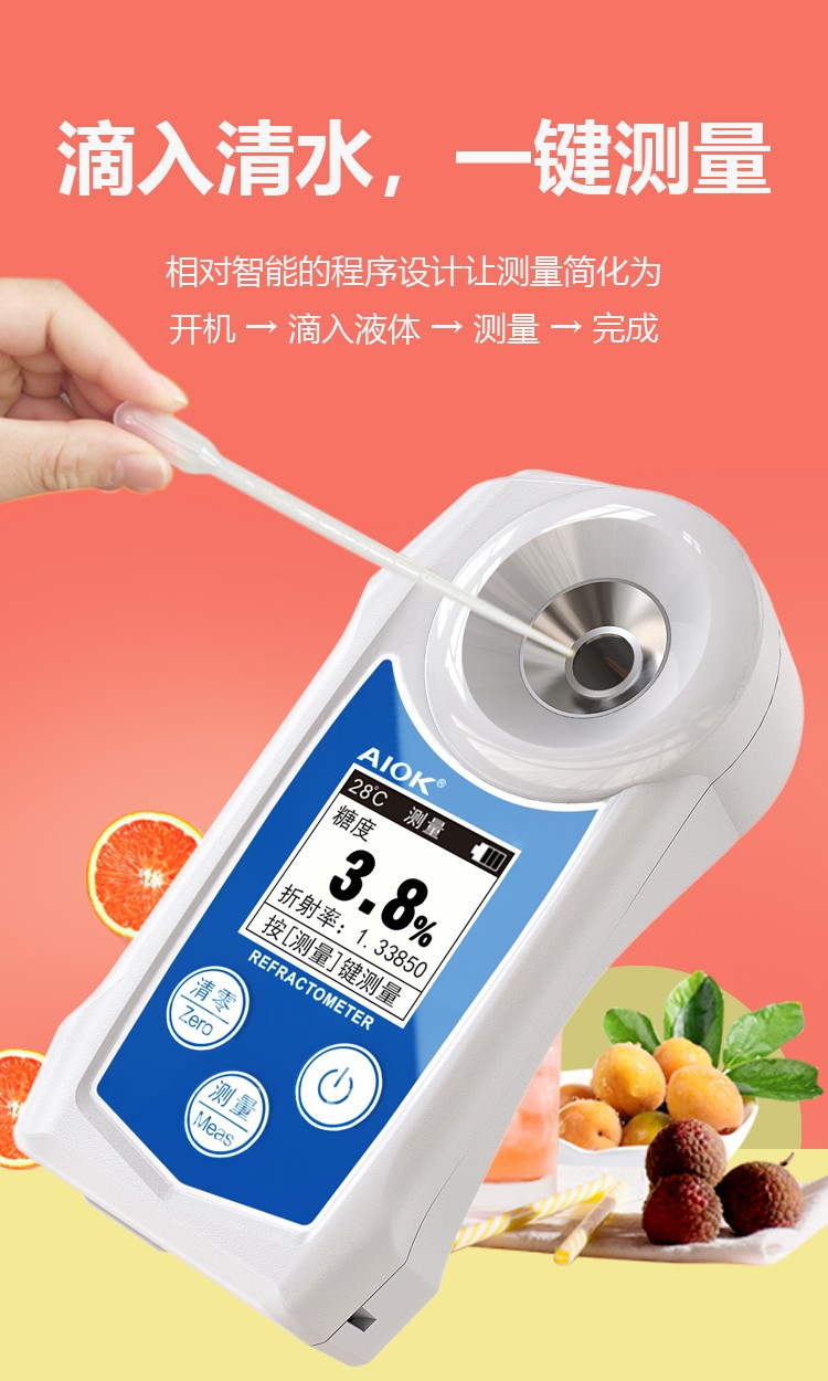 高精度糖度仪,一键测量,3秒读数,应对各种酸碱腐蚀